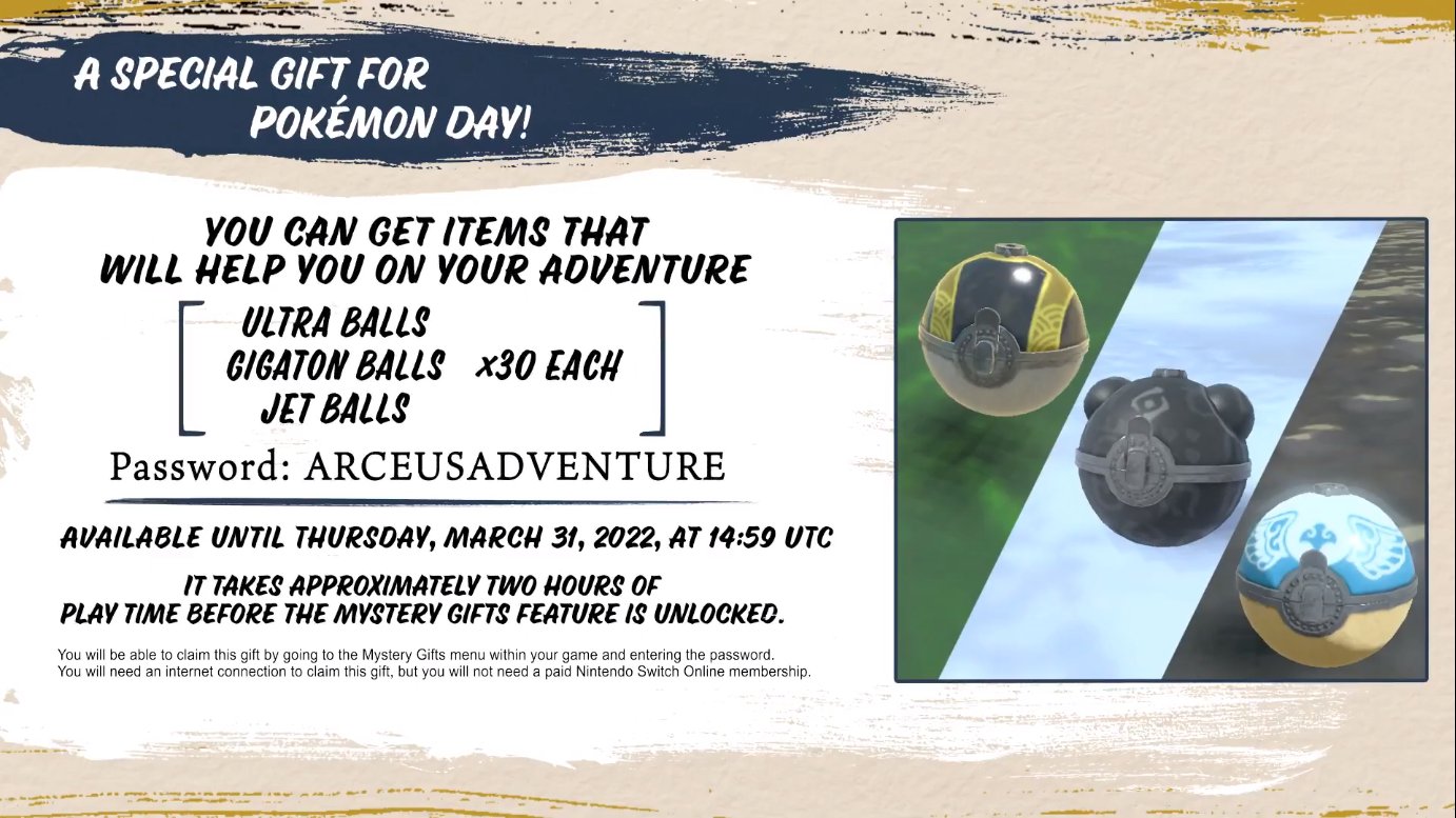 A new post on the poké_times Twitter page via Serebii has announced that Pokémon Legends. This will allow you to easily be able to get Mystery Gift and be able to access the gifts when they come. Arceus players can now claim a bounty of free items using Mystery Gift codes.